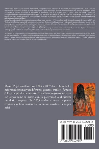 El Presidente Gardner ha sido asesinado, desmembrado y sus partes clavadas con estacas de piedra sobre una de las paredes de la Oficina Oval, pero increíblemente ese dantesco escenario no es (ni se acerca a ser) la peor amenaza que enfrentan los Estados Unidos. Un ataque de dimensiones bíblicas ha arrasado con más de la tercera parte de la población en la operación a gran escala conocida como "El Día del Cuervo". Sin embargo, su capacidad armamentística y de respuesta está en un 90% operativa, y lo que queda del Gobierno se pregunta: ¿por qué? ¿Quiénes nos han arrasado hasta los escombros pero nos dejan la capacidad de respuesta ofensiva casi intacta? ¿Quiénes han sido los responsables? ¿Cómo es posible que cualquier sistema de defensa o de respuesta haya fallado? Los satélites están tomados, las comunicaciones controladas por el enemigo, y el Vicepresidente acude al único Investigador Privado y ex-CIA, Jack Warden, con un historial impecable de cero fracasos en sus servicios al país, para ayudarle a entender a qué o a quién se están enfrentando, y formar un plan de contingencia y de respuesta ofensiva retaliativa.Jack liderará los esfuerzos de la mayor fuerza conjunta de Inteligencia y recursos investigativos jamás formada para mitigar los daños ocasionados y hallar a los responsables.. Sin embargo no pueden sospechar que quizás "El día que América fue subyugada", como se lo conocería más tarde, no sería sino el primer eslabón de una cadena que podría conducir a la aniquilación global. El fin... de la raza humana y de la vida como la concebimos. Marcel Pujol, en su Opera Prima, y que constituye su onceavo título publicado, nos guía por un camino de demencia y de destrucción en el existen algunos pocos humanos sensibles a los flujos de energías e interconecciones entre los diferentes planos del multiverso, que pueden ser canalizadas con el propósito de traer a nuestro plano y a nuestro planeta Tierra, criaturas grotescas a la vez que mortíferas (demonios, salamandras, sílfides y Virtudes) que harán lo que sea que su invocador les ordene con el fin de volver a su dimensión.