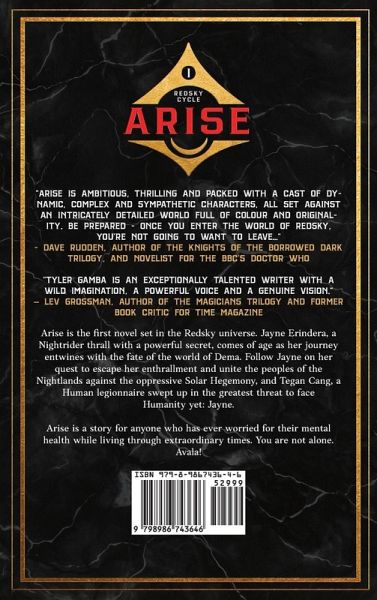 This 92k words science-fantasy young-adult novel follows Jayne Erindera, a Nightrider thrall with a powerful secret who comes of age as her journey entwines with the fate of the living world of Dema, and Tegan Cang, a Human legionnaire swept up in the greatest threat to face the Humanity yet: Jayne. Arise is written within the vast lore in the growing Redsky universe created by Solar Studios. Check out all things Redsky at https://www.solar-studios.com/ Arise is a story for anyone who has ever worried for their mental health while living through extraordinary times. You are not alone. Avala! Arise is the first novel set in the Redsky universe. Jayne Erindera, a Nightrider thrall with a powerful secret, comes of age as her journey entwines with the fate of the world of Dema. Follow Jayne on her quest to escape her enthrallment and unite the peoples of the Nightlands against the oppressive Solar Hegemony, and Tegan Cang, a Human legionnaire swept up in the greatest threat to face the Humanity yet: Jayne.