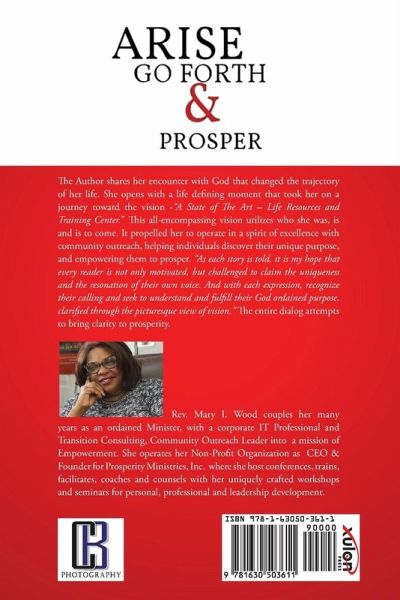 The Author shares her encounter with God that changed the trajectory of her life. She opens with a life defining moment that took her on a journey toward the vision -"A State of The Art - Life Resources and Training Center." This all-encompassing vision utilizes who she was, is and is to come. It propelled her to operate in a spirit of excellence with community outreach, helping individuals discover their unique purpose, and empowering them to prosper. "As each story is told, it is my hope that every reader is not only motivated, but challenged to claim the uniqueness and the resonation of their own voice. And with each expression, recognize their calling and seek to understand and fulfill their God ordained purpose, clarified through the picturesque view of vision." The entire dialog attempts to bring clarity to prosperity. Rev. Mary I. Wood couples her many years as an ordained Minister, with a corporate IT Professional and Transition Consulting, Community Outreach Leader into a mission of Empowerment. She operates her Non-Profit Organization as CEO & Founder for Prosperity Ministries, Inc. where she host conferences, trains, facilitates, coaches and counsels with her uniquely crafted workshops and seminars for personal, professional and leadership development.