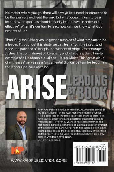Several qualities, such as integrity, patience, wisdom, courage, and commitment, should characterize a Godly leader. Each of these qualities is exemplified in different individuals in the Bible, including Boaz, Joseph, Abigail, Joshua, Abraham, and of course, Jesus Christ. By studying the examples of these great leaders, we can better understand what it takes to be the leader that God calls us to be. It is important to remember that these qualities should be rooted in love, humility, and a deep relationship with God, as these are essential components of a successful leader. Arise: Leading By The Book is a 13-chapter study for pre-teens and teens as they mature in their own character to be the leaders God wants them to be. Parents will find this resource helpful as they strive to instill these qualities in their children's lives. Bible class teachers will discover the layout and breakdown of each chapter suitable for a small group study. Overall, teens will be drawn to the ease of the writing style and want to consume every chapter.