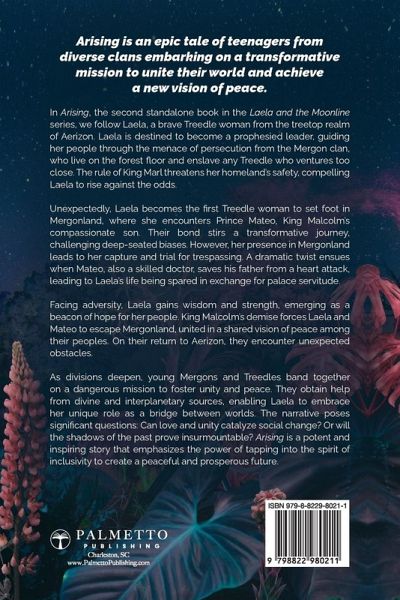 A kingdom in danger, a relentless enemy, a young woman seeking to unite divided clans. Will she succeed in bringing the two colliding realms together in peace, or will her world fall under the rule of a brutal king? Laela is a young Treedle woman. Enslaved by the Mergon clan, she needs to escape and fulfill her destiny by leading her people to safer times. Mateo is the young Mergon prince. Defying his father, he helps Laela escape to safety. Relentlessly pursued by the king, they need to find a way to peace before it's too late. When King Marl brings the threat of war to her home, Laela must draw on ancient prophecies, interplanetary allies, and her own rising spirit to become a leader of change. Can love and unity catalyze social change? Or will the shadows of the past prove insurmountable? Arising is an emotional coming of age epic fantasy centered on individual and societal transformation. It weaves allegory and adventure, delivering a thought-provoking tale that is perfectly suited for fans of character-driven fantasy.Order your copy now and dive into a transformative world of adventure.