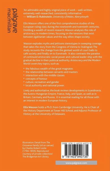 Ellis Wasson offers one of the first comprehensive studies of the European ruling class during the nineteenth and twentieth centuries. Distilling a wealth of recent research, Wasson analyses the role of aristocracy in modern times, focusing on the tensions that exist between egalitarian values and the way elites shape society. Wasson explodes myths and jettisons stereotypes in sweeping coverage that takes the story from the Congress of Vienna to Stalingrad. The study recounts the change from the genteel world of court balls to Café Society and finally on to Eurotrash. It also contrasts the paradox of continued aristocratic social power and cultural leadership with the gradual decline in their political authority. Aristocracy and the Modern World covers key topics, such as: - the fabulous wealth of the great magnates - the relationship between servants and masters - interaction with the middle classes - concepts of honour - culture, recreation and gender - local authority and national power. Lively and authoritative, the book reviews developments in Scandinavia, the Austro-Hungarian Empire, France, Italy and Spain as well as in Britain, Germany and Russia. It is essential reading for all those with an interest in modern European history.