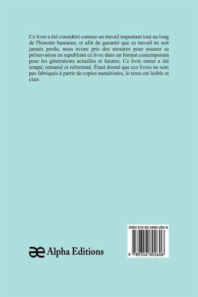 Aristophane; Traduction nouvelle, tome second, a été reconnu comme une ¿uvre majeure dans toute l'histoire humaine, et nous avons pris des précautions pour assurer sa préservation en rééditant ce livre de manière moderne pour les générations présentes et futures. Ce livre a été entièrement retapé, révisé et reformaté. Le texte est lisible et clair car ces livres ne sont pas créés à partir de copies numérisées.