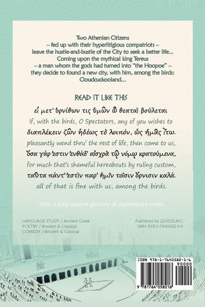A pocketbook Greek-English interlineal study text of Aristophanes' BIRDS. Includes a fully customized glossary of explanatory notes.