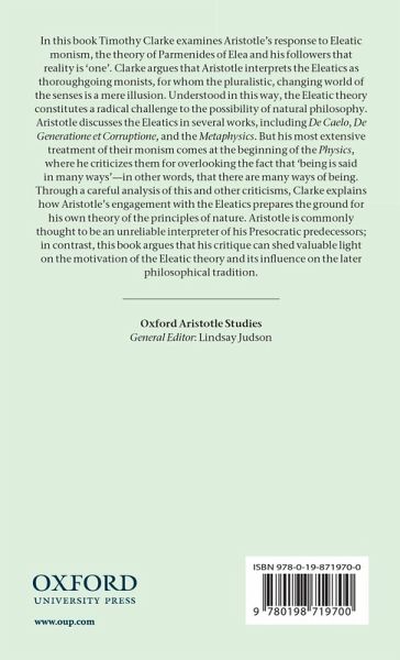 In the first book-length study of Aristotle's engagement with Eleatic monism, Timothy Clarke offers a detailed reconstruction and appraisal of Aristotle's criticisms of Eleatic monism, and uses these criticisms to work out how he understood the theory and the arguments given in its defence.
