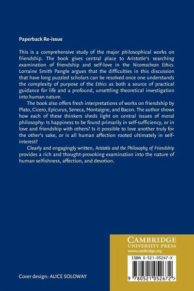 The book offers a comprehensive account of the major philosophical works on friendship.