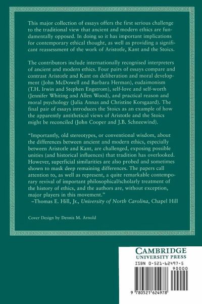 This major collection of essays offers the first serious challenge to the traditional view that ancient and modern ethics are fundamentally opposed. In doing so, it has important implications for contemporary ethical thought, as well as providing a significant reassessment of the work of Aristotle, Kant, and the Stoics.