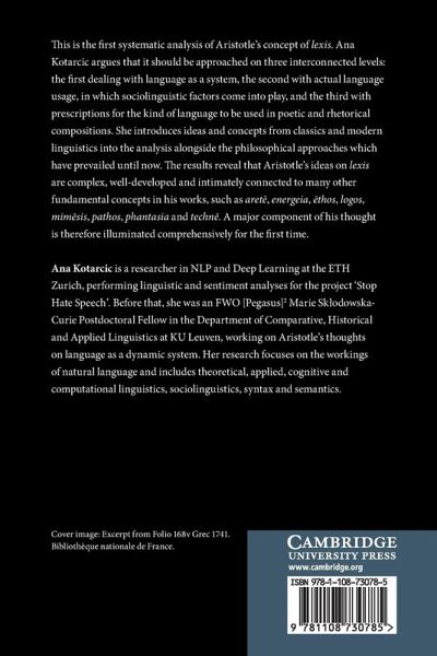 The first systematic analysis of Aristotle's concept of lexis, which is approached on three interconnected levels: the first dealing with language as a system, the second with actual language usage, and the third with prescriptions for the kind of language to be used in poetic and rhetorical compositions.