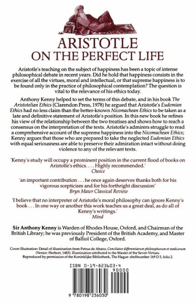 Aristotle's teaching on the subject of happiness has been a topic of intense philosophical debate in recent years. Did he hold that happiness consists in the exercise of all the virtues, moral and intellectual, or that supreme happiness is to be found only in the practice of philosophical contemplation? The question is vital to the relevance of his ethics today. Anthony Kenny helped to set the terms of the debate a quarter of a century ago. Later, in his book The Aristotelian Ethics (Clarendon Press, 1978), he argued that Aristotle's Eudemian Ethics had no less claim than the better-known Nicomachean Ethics to be taken as a late and definitive statement of Aristotle's position. In this new book he refines his view of the relationship between the two treatises and shows how to reach a consensus on the interpretation of the texts. Aristotle's admirers struggle to read a comprehensive account of the supreme happiness into the Nicomachean Ethics; Dr Kenny argues that those who are prepared to take the neglected Eudemian Ethics with equal seriousness are able to preserve their admiration intact without doing violence to any of the relevant texts.