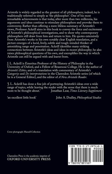 Discusses Aristotle's views on change, natural science, the mind, logic, philosophical method, metaphysics, and ethics, and suggests why the Greek philosopher still provokes controversy.