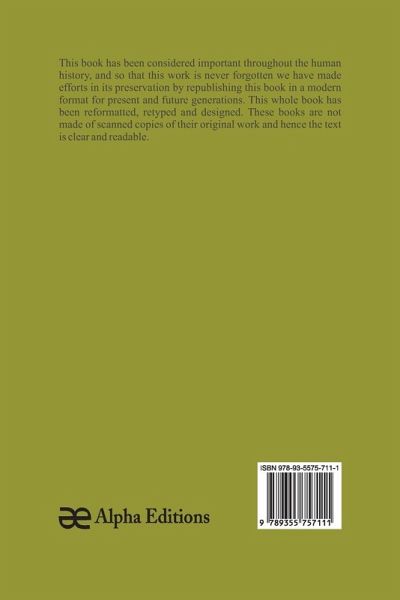 This book has been considered important throughout the human history, and so that this work is never forgotten we have made efforts in its preservation by republishing this book in a modern format for present and future generations. This whole book has been reformatted, retyped and designed. These books are not made of scanned copies and hence the text is clear and readable.