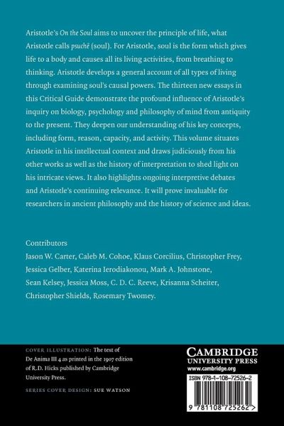 List of contributors Acknowledgments List of abbreviations Introduction Caleb M. Cohoe 1. Hylomorphic explanation and the scientific status of the DE Anima C. D. C. Reeve 2. Aristotle on earlier definitions of soul and their explanatory power: DA 1.2-5 Jason W. Carter 3. Why nous cannot be a magnitude: DE anima 1.3 Krisanna Scheiter 4. Souls among forms: Harmonies and Aristotle's hylomorphism Christopher Shields 5. Aristotle on the soul's unity Christopher Frey 6. Aristotle on seed Jessica Gelber 7. The gate to reality: Aristotle's basic account of perception Klaus Corcilius 8. Aristotle on the objects of perception Mark a. Johnstone 9. Awareness and self-awareness in the Aristotelian tradition Katerina Ierodiakonou 10. Phantasia and error Rosemary Twomey 11. Intelligibility, insight, and intelligence Sean Kelsey 12. The separability of nous Caleb M. Cohoe 13. Thought and imagination: Aristotle's dual process psychology of action Caleb M. Cohoe Bibliography Index.