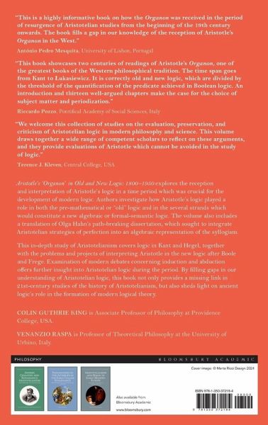 Aristotle's 'Organon' in Old and New Logic: 1800 -1950 explores the reception and interpretation of Aristotle's logic in a time period which was crucial for the development of modern logic. Authors investigate how Aristotle's logic played a role in both the pre-mathematical or "old" logic and in the several strands which would constitute a new algebraic or formal-semantic logic. The volume also includes a translation of Olga Hahn's path-breaking dissertation, which sought to integrate Aristotelian strategies of perfection into an algebraic representation of the syllogism. This in-depth study of Aristotelianism covers logic in Kant and Hegel, together with the problems and projects of interpreting Aristotle in the new logic after Boole and Frege. Examination of modern debates concerning induction and abduction offers further insight into Aristotelian logic during the period. By filling gaps in our understanding of Aristotelian logic, this book not only provides a missing link in 21st-century studies of the history of Aristotelianism, but also sheds light on ancient logic's role in the formation of modern logical theory.