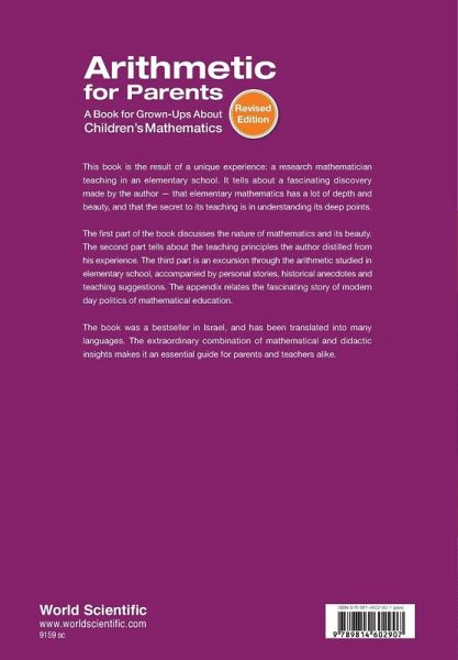 "Throughout the volume, the author is delighted to develop his marvelous experience that elementary mathematics has a lot of depth and beauty. This text reinforces the importance if in-depth understanding of mathematics. I would recommend this text to Mathematics Educators. It provides a very good look into elementary education in Israel, while at the same time reinforcing effective mathematics education that could be taught anywhere." MAA Reviews "I highly recommend the book to parents who have math phobias as well as those who want to brush up on their math skills to assist their children with homework assignments. It will give parents the confidence to help their children succeed and thrive in mathematics." Mathematics Teaching in the Middle School This book is the result of a unique experience: a research mathematician teaching in an elementary school. It tells about a fascinating discovery made by the author - that elementary mathematics has a lot of depth and beauty, and that the secret to its teaching is in understanding its deep points. The first part of the book discusses the nature of mathematics and its beauty. The second part tells about the teaching principles the author distilled from his experience. The third part is an excursion through the arithmetic studied in elementary school, accompanied by personal stories, historical anecdotes and teaching suggestions. The appendix relates the fascinating story of modern day politics of mathematical education. The book was a bestseller in Israel, and has been translated into many languages. The extraordinary combination of mathematical and didactic insights makes it an essential guide for parents and teachers alike.