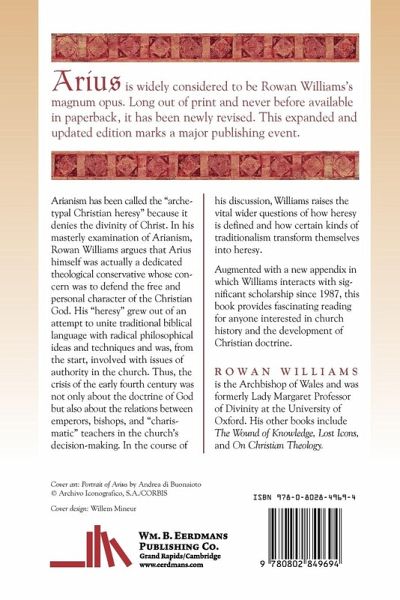 Arius is widely considered to be Rowan Williams's magnum opus. Long out of print and never before available in paperback, it has been newly revised. This expanded and updated edition marks a major publishing event. Arianism has been called the "archetypal Christian heresy" because it denies the divinity of Christ. In his masterly examination of Arianism, Rowan Williams argues that Arius himself was actually a dedicated theological conservative whose concern was to defend the free and personal character of the Christian God. His "heresy" grew out of an attempt to unite traditional biblical language with radical philosophical ideas and techniques and was, from the start, involved with issues of authority in the church. Thus, the crisis of the early fourth century was not only about the doctrine of God but also about the relations between emperors, bishops, and "charismatic" teachers in the church's decision-making. In the course of his discussion, Williams raises the vital wider questions of how heresy is defined and how certain kinds of traditionalism transform themselves into heresy. Augmented with a new appendix in which Williams interacts with significant scholarship since 1987, this book provides fascinating reading for anyone interested in church history and the development of Christian doctrine.