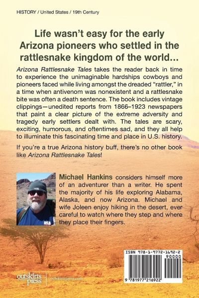 Arizona Rattlesnake Tales takes the reader back to a time when antivenom was nonexistent to experience the unimaginable hardships cowboys and pioneers faced while living among the dreaded rattler. The book includes newspaper clippings from 1866 to 1923, which provide a factual foundation to these scary, exciting, and sometimes humorous tales, perfect for the Arizona history buff. Author Michael D. Hankins has been an outdoorsman, conservationist, and adventurer for sixty-five years. He is as interested in Arizona Rattlesnake Tales adding to readers' knowledge of history as he is increasing their awareness about the importance of conservation practices to keep rattlesnakes off the endangered species list.
