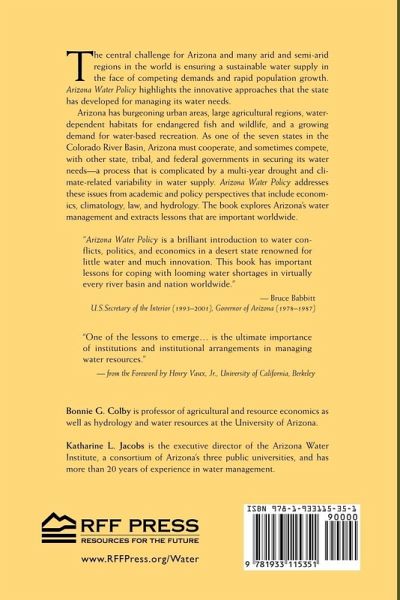 The central challenge for Arizona and many other arid regions in the world is keeping a sustainable water supply in the face of rapid population growth and other competing demands. This book highlights new approaches that Arizona has pioneered for managing its water needs. The state has burgeoning urban areas, large agricultural regions, water dependent habitats for endangered fish and wildlife, and a growing demand for water-based recreation. A multi-year drought and climate-related variability in water supply complicate the intense competition for water. Written by well-known Arizona water experts, the essays in this book address these issues from academic, professional, and policy perspectives that include economics, climatology, law, and engineering. Among the innovations explored in the book is Arizona's Groundwater Management Act. Arizona is not alone in its challenges. As one of the seven states in the Colorado River Basin that depend heavily on the river, Arizona must cooperate, and sometimes compete, with other state, tribal, and federal governments. One institution that furthers regional cooperation is the water bank, which encourages groundwater recharge of surplus surface water during wet years so that the water remains available during dry years. The Groundwater Management Act imposes conservation requirements and establishes planning and investment programs in renewable water supplies. The essays in Arizona Water Policy are accessible to a broad policy-oriented and nonacademic readership. The book explores Arizona's water management and extracts lessons that are important for arid and semi-arid areas worldwide.