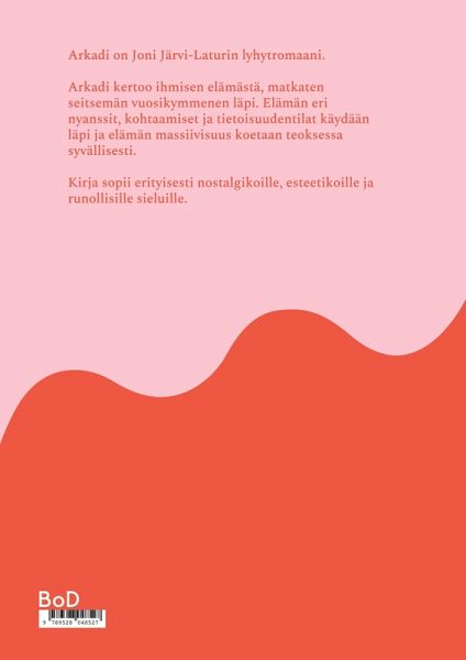 Arkadi on Joni Järvi-Laturin lyhytromaani. Arkadi kertoo ihmisen elämästä, matkaten seitsemän vuosikymmenen läpi. Elämän eri nyanssit, kohtaamiset ja tietoisuudentilat käydään läpi ja elämän massiivisuus koetaan teoksessa syvällisesti. Kirja sopii erityisesti nostalgikoille, esteetikoille ja runollisille sieluille.