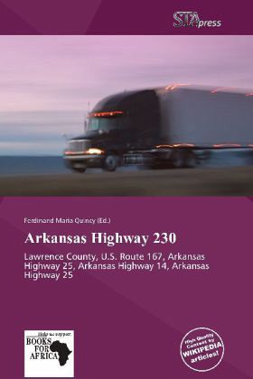 Please note that the content of this book primarily consists of articles available from Wikipedia or other free sources online. Arkansas Highway 230 is a designation for three separate state routes in Arkansas.Arkansas Highway 230 is a state highway of 13.8 miles (22.2 km) that runs in Sharp County. A short portion also runs in adjacent Lawrence County. It has no business or spur routes.AR 230 begins in Cave City at US 167. It runs east to Strawberry, where it meets AR 25 and terminates. It does not cross or concur with any other state highways.Arkansas Highway 230 is a state highway of 8.3 miles (13.4 km) that runs in Independence County. It has no business or spur routes.AR 230 begins in Locust Grove at AR 14/AR 25. The route runs east through Jamestown to Southside, where it terminates at US 167.
