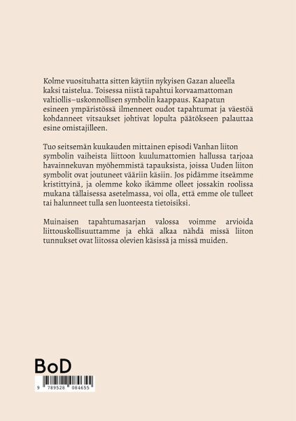 Kolme vuosituhatta sitten dokumentoitiin nykyisen Gazan alueella tuolloin käydyt kaksi taistelua. Toisessa niistä tapahtui korvaamattomana pidetyn valtiollis-uskonnollisen symbolin kaappaus. Kaapatun esineen ympäristössä ilmenneet tapahtumat ja väestöä kohdanneet vitsaukset johtivat lopulta päätökseen palauttaa esine omistajilleen. Tuo seitsemän kuukauden mittainen episodi liiton symbolin vaiheista liittoon kuulumattomien hallussa tarjoaa havainnekuvan myöhemmistä tapauksista, joissa Uuden liiton symbolit ovat joutuneet vääriin käsiin. Jos pidämme itseämme kristittyinä ja olemme koko ikämme olleet jossakin roolissa mukana tällaisessa asetelmassa, voi olla että emme ole tulleet tai halunneet tulla sen luonteesta tietoisiksi. Mutta tuon muinaisen tapahtumasarjan valossa voimme arvioida liittouskollisuuttamme, ja ehkä alkaa nähdä missä liiton tunnukset ovat liitossa olevien käsissä ja missä muiden.