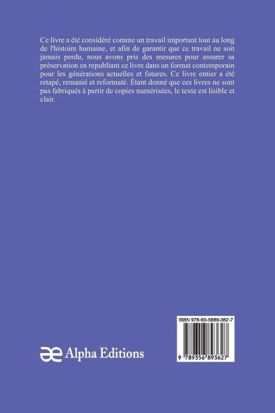 Arlette des Mayons: Roman de la terre et de l'école, a été reconnu comme une ¿uvre majeure tout au long de l'histoire humaine, et nous avons pris des précautions pour assurer sa préservation en republiant ce livre de manière moderne pour les générations présentes et futures. Ce livre a été entièrement retapé, révisé et reformaté. Le texte est lisible et clair car ces livres ne sont pas créés à partir de copies numérisées.