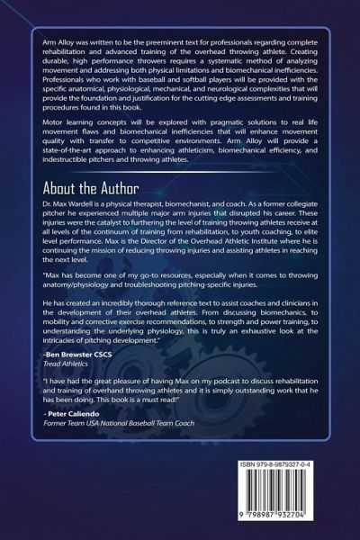 Training and rehabilitation of throwing athletes often lacks a holistic approach that is based on the fundamental sciences that govern how we move, heal, and think. Successful rehabilitation of complex throwing related injuries requires a culmination of in-depth knowledge of biomechanics, physiology, motor learning, and orthopedic injuries. Likewise, peak performance is never truly attained without a blend of interventions focused around the aforementioned sciences. This book will combine these sciences with experience of the art of sport to create an actionable approach that is aimed at altering the perspective of high-level coaches and clinicians who rehabilitate and train baseball players. Numerous athletes, in fact thousands of athletes walk into the physician's office or physical therapy clinic daily with throwing injuries. Frankly, many of these athletes may never throw another ball competitively again. A specific and proven approach to optimizing their healing and recovery can get these athletes back on the field. Furthermore, quality assessment and training of these athletes prior to injury may have prevented future injury while simultaneously allowing the athlete to realize their full potential on the field. This book will provide an understanding of the foundational sciences that guide therapeutic and performance enhancing interventions. Readers will next move into a unique assessment approach to truly discover where each athlete is limited and succeeding. This book will provide a comprehensive guide to common orthopedic pathologies in throwers with associated biomechanical faults. Understanding how the body moves and how it can potentially move requires screening and assessment processes that can identify where and how an athlete may compensate and rob themselves of speed or where they may have the capacity to move more effectively allowing them to better recruit velocity. Throwing analysis requires more than observation of traditional coaching models or just an understanding of physics but also an understanding of how the nervous system coordinates the movement apparatus as a whole and how intricate joint motions can correlate to injury or inefficiency. The most commonly neglected component of training and rehabilitation programs for throwing and pitching athletes are biomechanical and motor learning interventions that are focused around improving the sequencing of the throw to allow athletes to move through the throw without placing pathologic stresses on their shoulder or elbow. The most potent exercises are designed around an understanding of how the body actually moves in contextual sporting environments. Readers will ultimately gain an understanding of every aspect of creating or recreating durable, elite level throwers. Our goal is and has always been to protect as many athletes as possible from injury and assist athletes in reaching their full potential. We are glad that you are joining us on this mission to elevate the level of care and effectiveness of training for all throwing athletes through scientifically backed and medically justified techniques and interventions. We see this text as a catalyst towards more optimal performance training and effective rehabilitation across the board for pitchers and throwers alike.