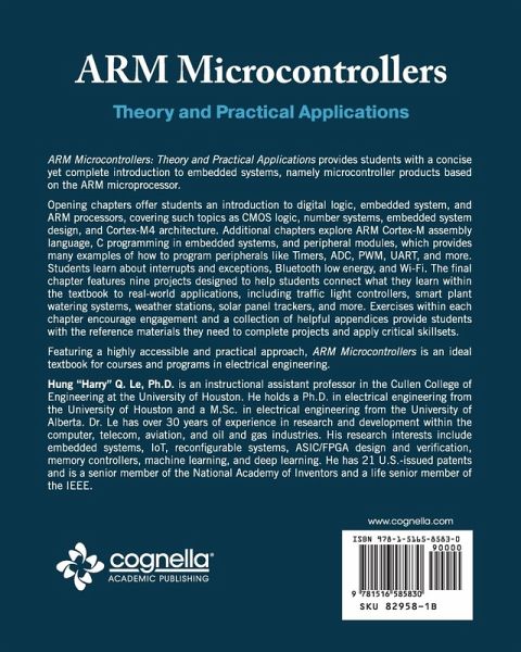 ARM Microcontrollers: Theory and Practical Applications provides students with a concise yet complete introduction to embedded systems, namely microcontroller products based on the ARM microprocessor. Opening chapters offer students an introduction to digital logic, embedded system, and ARM processors, covering such topics as CMOS logic, number systems, embedded system design, and Cortex-M4 architecture. Additional chapters explore ARM Cortex-M assembly language, C programming in embedded systems, and peripheral modules, which provides many examples of how to program peripherals like Timers, ADC, PWM, UART, and more. Students learn about interrupts and exceptions, Bluetooth low energy, and Wi-Fi. The final chapter features nine projects designed to help students connect what they learn within the textbook to real-world applications, including traffic light controllers, smart plant watering systems, weather stations, solar panel trackers, and more. Exercises within each chapter encourage engagement and a collection of helpful appendices provide students with the reference materials they need to complete projects and apply critical skillsets. Featuring a highly accessible and practical approach, ARM Microcontrollers is an ideal textbook for courses and programs in electrical engineering.