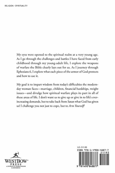 My eyes were opened to the spiritual realm at a very young age. As I go through the challenges and battles I have faced from early childhood through my young-adult life, I explore the weapons of warfare the Bible clearly lays out for us. As I journey through Ephesians 6, I explore what each piece of the armor of God protects and how to use it. My goal is to impart wisdom from today's difficulties the modern-day woman faces-marriage, children, financial hardships, weight issues-and divulge how spiritual warfare plays its part in all of these areas of life. I don't want us to give up or give in to life's ever-increasing demands, but to take back from Satan what God has given us! I challenge you not just to cope, but to Arm Yourself!