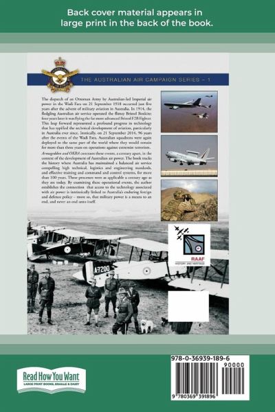 The dispatch of an Ottoman Army by Australian-led Imperial air power in the Wadi Fara on 21 September 1918 occurred just five years after the advent of military aviation in Australia. In 1914, the fledgling Australian air service operated the flimsy Bristol Boxkite; four years later it was flying the far more advanced Bristol F2B Fighter. This leap forward represented a profound progress in technology that has typified the technical development of aviation, particularly in Australia ever since. Ironically, on 21 September 2014, 96 years after the events of the Wadi Fara, Australian squadrons were again deployed to the same part of the world where they would remain for more than three years on operations against extremist terrorism. Armageddon and OKRA contrasts these events, a century apart, in the context of the development of Australian air power. The book tracks the history where Australia has maintained a balanced air service compelling high technical, logistics and engineering standards, and effective training and command and control systems, for more than 100 years. These processes were as applicable a century ago as they are today. By examining these operational events, the author establishes the connection that access to the technology associated with air power is intrinsically linked to Australia's enduring foreign and defence policy - more so, that military power is a means to an end, and never an end unto itself.