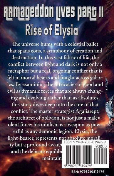 universe hums with a celestial ballet that spans eons, a symphony of creation and destruction. In this vast fabric of life, the conflict between light and dark is not only a metaphor but a real, ongoing conflict that is felt in mortal hearts and fought across galaxies. By examining the intricacies of good and evil as dynamic forces that are always changing and evolving rather than as absolutes, this story dives deep into the core of that conflict. The master strategist Agaliarept, the architect of oblivion, is not just a malevolent force; his nihilism is a weapon as powerful as any demonic legion. Elysia, the light-bearer, represents not absolute morality but a profound awareness of selflessness and the delicate equilibrium that must be maintained.