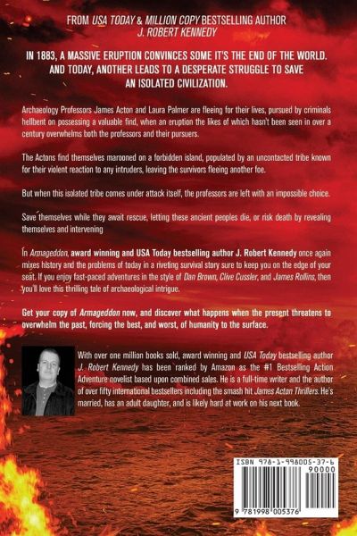 "James Acton: A little bit of Jack Bauer and Indiana Jones!" FROM USA TODAY & MILLION COPY BESTSELLING AUTHOR J. ROBERT KENNEDY IN 1883, A MASSIVE ERUPTION CONVINCES SOME IT'S THE END OF THE WORLD. AND TODAY, ANOTHER LEADS TO A DESPERATE STRUGGLE TO SAVE AN ISOLATED CIVILIZATION. Archaeology Professors James Acton and Laura Palmer are fleeing for their lives, pursued by criminals hellbent on possessing a valuable find, when an eruption the likes of which hasn't been seen in over a century overwhelms both the professors and their pursuers. The Actons find themselves marooned on a forbidden island, populated by an uncontacted tribe known for their violent reaction to any intruders, leaving the survivors fleeing another foe. But when this isolated tribe comes under attack itself, the professors are left with an impossible choice. Save themselves while they await rescue, letting these ancient peoples die, or risk death by revealing themselves and intervening. In Armageddon, award-winning and USA Today bestselling author J. Robert Kennedy once again mixes history and the problems of today in a riveting survival story sure to keep you on the edge of your seat. If you enjoy fast-paced adventures in the style of Dan Brown, Clive Cussler, and James Rollins, then you'll love this thrilling tale of archaeological intrigue. Get your copy of Armageddon now, and discover what happens when the present threatens to overwhelm the past, forcing the best, and worst, of humanity to the surface. About the James Acton Thrillers: ¿¿¿¿¿ "James Acton: A little bit of Jack Bauer and Indiana Jones!" Though this book is part of the James Acton Thrillers series, it is written as a standalone novel and can be enjoyed without having read any other installments. ¿¿¿¿¿ "Non-stop action that is impossible to put down." The James Acton Thrillers series and its spin-offs, the Special Agent Dylan Kane Thrillers and the Delta Force Unleashed Thrillers, span over 50 novels and have sold over one million copies. If you love non-stop action and intrigue with a healthy dose of humor, try James Acton today! ¿¿¿¿¿ "A great blend of history and current headlines."