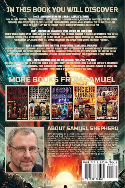 ¿¿¿¿ Armageddon: Chronicles of Humanity's End and Survival ¿¿¿¿ "What happens when the world stands on the brink of destruction... and humanity must fight to survive?" Are you ready to explore the edge of existence? ¿¿¿¿ Armageddon is not just a book-it's a journey through humanity's darkest hours, its greatest threats, and the hope that rises from the ashes. This captivating four-book collection is a masterful blend of science, myth, technology, and the resilience of the human spirit.¿¿¿¿ The Chronicles at a Glance ¿¿¿¿ Book 1 - Armageddon Rising: The Science of Global Catastrophes From volcanic eruptions to asteroid strikes, deadly pandemics to climate collapse, discover the forces of nature and science that could bring civilization to its knees. Backed by chilling research and real-world scenarios, this volume exposes the fragility of our planet and the looming threats that science warns us to prepare for. ¿¿¿¿ Book 2 - Prophecies of Armageddon: Myths, Legends, and Sacred Texts What if ancient stories of the end of days hold deeper truths? From the Norse Ragnarok ¿¿ to the Book of Revelation ¿¿¿¿, from Mayan calendars ¿¿¿¿ to Hindu cycles of destruction, this volume unveils the legends and sacred warnings that have captivated humanity for millennia. Explore the myths that shaped civilizations and reflect on the lessons they carry for today. ¿¿¿¿ Book 3 - Armageddon 2045: The Future of Warfare and Technological Apocalypse Artificial intelligence, autonomous weapons, and cyber warfare-what happens when the machines we create turn against us? ¿¿ The future is here, and the line between human control and machine dominance has never been thinner. This gripping volume explores the dangers of unchecked innovation, exposing a future where technology could trigger our ultimate downfall. ¿¿¿¿ Book 4 - After Armageddon: Rebuilding Civilization in a Post-Apocalyptic World When the dust settles and the world has burned, what comes next? ¿¿¿¿ This final volume takes readers on a powerful exploration of survival, resilience, and renewal. From rebuilding shattered societies to rediscovering humanity's place in the world, this book is a testament to the strength of the human spirit to rise again.¿¿¿¿ Why You Need This Book Series ¿¿¿¿ ¿ A Journey Through Science and Myth: Immerse yourself in a seamless blend of fact and storytelling. Learn how science and legends intertwine to shape humanity's understanding of the end. ¿ Thrilling, Thought-Provoking, and Eye-Opening: Each page pulls you deeper into a narrative that challenges your perspective on survival, progress, and resilience. ¿ Perfect for Fans of Apocalypse and Survival Stories: Whether you love The Road, The Walking Dead, or documentaries like Ancient Apocalypse and Planet Earth, this series will captivate you. ¿ Rich in Detail, Accessible to All: Written for enthusiasts, thinkers, and readers who love big ideas delivered in powerful storytelling. ¿¿¿¿ Click Buy Now and uncover the Chronicles of Humanity's End and Survival. ¿¿¿¿ The end is just the beginning... ¿¿¿¿