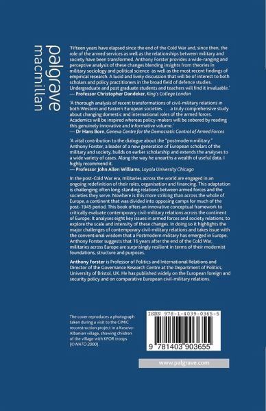 'Fifteen years have elapsed since the end of the Cold War - at least in the West - and, since then, the role of the armed services as well as the relationships between military and society have been transformed. Anthony Forster provides a wide-ranging and perceptive analysis of these changes blending insights from theories in military sociology and political science as well as the most recent findings of empirical research. He compares and contrasts the experiences of Western and post-Communist Europe and provides a lucid and lively discussion that will be of interest to both scholars and policy practitioners in the broad field of defence studies. Undergraduate and postgraduate students and teachers will find it invaluable.' - Professor Christopher Dandeker, Department of War Studies, King's College London, UK