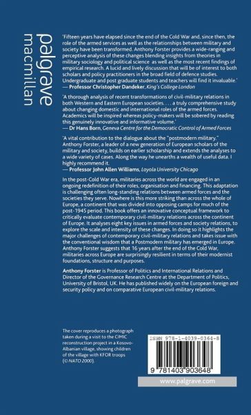 'Fifteen years have elapsed since the end of the Cold War - at least in the West - and, since then, the role of the armed services as well as the relationships between military and society have been transformed. Anthony Forster provides a wide-ranging and perceptive analysis of these changes blending insights from theories in military sociology and political science as well as the most recent findings of empirical research. He compares and contrasts the experiences of Western and post-Communist Europe and provides a lucid and lively discussion that will be of interest to both scholars and policy practitioners in the broad field of defence studies. Undergraduate and postgraduate students and teachers will find it invaluable.' - Professor Christopher Dandeker, Department of War Studies, King's College London, UK