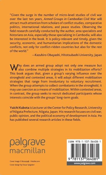 In civil war the causal mechanism on recruitment of combatants is complicated because armed groups interact for context-based strategic. This book argues that a group will adopt varying mobilization strategies depending upon the difference in a group's influence between the stronghold and contested areas, using as examples two Cambodian civil wars.