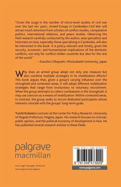 In civil war the causal mechanism on recruitment of combatants is complicated because armed groups interact for context-based strategic. This book argues that a group will adopt varying mobilization strategies depending upon the difference in a group's influence between the stronghold and contested areas, using as examples two Cambodian civil wars.