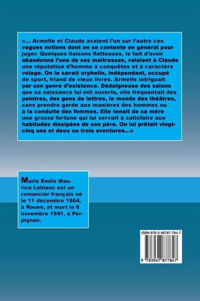 ... Armelle et Claude avaient l'un sur l'autre ces vagues notions dont on se contente en général pour juger. Quelques liaisons flatteuses, le fait d'avoir abandonné l'une de ses maîtresses, valaient à Claude une réputation d'homme à conquêtes et à caractère volage. On le savait orphelin, indépendant, occupé de sport, friand de vieux livres. Armelle intriguait par son genre d'existence. Dédaigneuse des salons que sa naissance lui eût ouverts, elle fréquentait des peintres, des gens de lettres, le monde des théâtres, sans prendre garde aux manières des hommes ou à la conduite des femmes. Elle tenait de sa mère une grosse fortune qui lui servait à satisfaire aux habitudes dissipées de son père. On lui prêtait vingt-cinq ans et deux ou trois aventures...