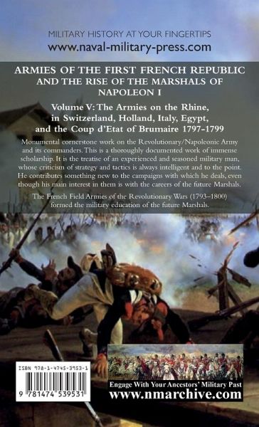 Monumental cornerstone work on the Revolutionary/Napoleonic Army and its commanders. This is a thoroughly documented work of immense scholarship. It is the treatise of an experienced and seasoned military man, whose criticism of strategy and tactics is always intelligent and to the point. He contributes something new to the campaigns with which he deals, even though his main interest in them is with the careers of the future Marshals. The French Field Armies of the Revolutionary Wars (1793-1800) formed the military education of the future Marshals.