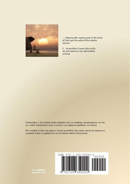 Comprendere e allo stesso tempo sbagliare sono la medesima consapevolezza, ciò che noi, a volte, interpretiamo come un errore è, nel medesimo significato, una vittoria. Più è sottile la linea che separa il mondo percettibile alla nostra mente, più svanisce la necessità di dare un significato di ciò che diventa visibile interiormente.