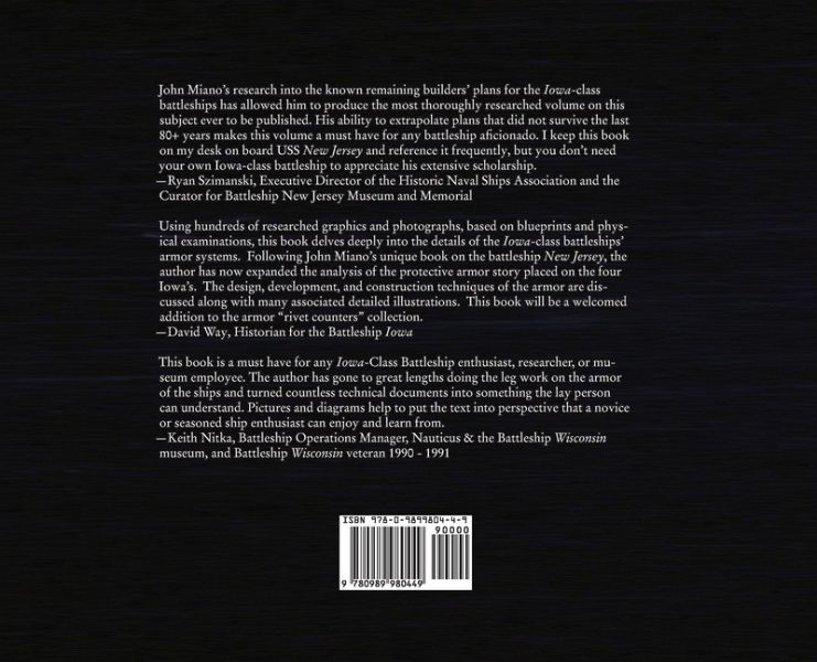 Armor of the Iowa-Class Battleships is the second book in this series on these warships. Devoting a single, large volume to this subject has resulted in the most detailed book on a warship ever published. The book uses over 600 original plans, new scale drawing, renderings, and photographs to document the armor protection of the Iowa-class battleships. There are measured drawings showing the dimensions of each armor plate on the ship. The book explains how the armor was assembled and illustrates the supporting structures for the armor. Differences among the various ships are shown. Because this book relies on original plans and ship measurements, it corrects many errors about the Iowa-class that circulate in print.