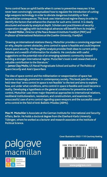 'Drawing on international relations theory, Mutschler provides a convincing argument on why despite current obstacles arms control in space is feasible and could improve future space security. His thoughtful analysis provides fresh ideas to current policy debates and a wealth of information for students. He concludes with useful suggestions on the potential role of an emerging epistemic community toward building a stronger international regime. Mutschler's book is well researched and a valuable contribution to the literature.'