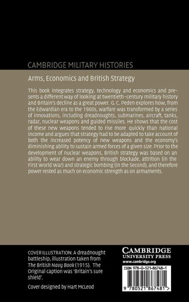 This book integrates strategy, technology and economics and presents a new way of looking at twentieth-century military history and Britain's decline as a great power. G. C. Peden explores how from the Edwardian era to the 1960s warfare was transformed by a series of innovations, including dreadnoughts, submarines, aircraft, tanks, radar, nuclear weapons and guided missiles. He shows that the cost of these new weapons tended to rise more quickly than national income and argues that strategy had to be adapted to take account of both the increased potency of new weapons and the economy's diminishing ability to sustain armed forces of a given size. Prior to the development of nuclear weapons, British strategy was based on an ability to wear down an enemy through blockade, attrition (in the First World War) and strategic bombing (in the Second), and therefore power rested as much on economic strength as on armaments.