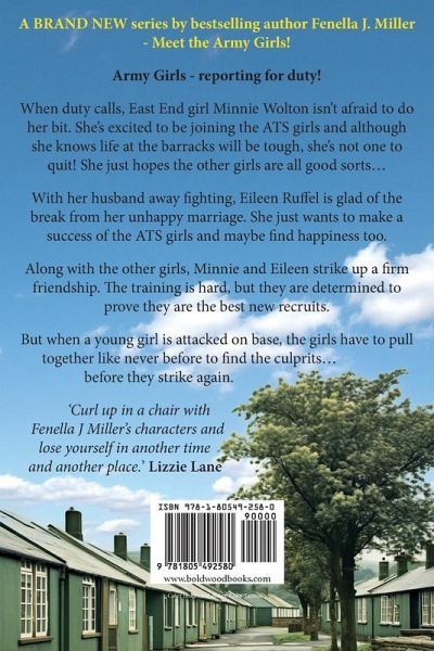 A BRAND NEW series by bestselling author Fenella J. Miller - Meet the Army Girls! Army Girls - reporting for duty! When duty calls, East End girl Minnie Wolton isn't afraid to do her bit. She's excited to be joining the ATS girls and although she knows life at the barracks will be tough, she's not one to quit! She just hopes the other girls are all good sorts... With her husband away fighting, Eileen Ruffel is glad of the break from her unhappy marriage. She just wants to make a success of the ATS girls and maybe find happiness too. Along with the other girls, Minnie and Eileen strike up a firm friendship. The training is hard, but they are determined to prove they are the best new recruits. But when a young girl is attacked on base, the girls have to pull together like never before to find the culprits....before they strike again. Praise for Fenella J. Miller: 'Yet again, Fenella Miller has thrilled me with another of her historical stories. She brings alive a variety of emotions and weaves in facts relating to the era, all of which keep me reading into the small hours.' Glynis Peters- Bestselling author of The Secret Orphan. 'Curl up in a chair with Fenella J Miller's characters and lose yourself in another time and another place.' Lizzie Lane 'Engaging characters and setting which whisks you back to the home front of wartime Britain. A fabulous series!' Jean Fullerton