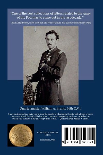 "Army Life According to Arbaw" is a book length Civil War soldier's narrative that presents a well written and insightful view of army life as viewed by William A. Brand of the 66th Ohio Volunteer Infantry. Brand, whose missives were published under the nom-de-plume "D.N. Arbaw" by the Urbana Citizen & Gazette, wrote frequent letters that provide a detailed view of his regiment's experiences with both the Army of the Potomac and the Army of the Cumberland. Eighty-two of his wartime letters are included in this book. Early in the war he was detailed to the quartermaster's department of the regiment to assist his father who was the regimental quartermaster. As such, Brand's military family was the leadership of the regiment, and he described the campaigns and battles in which his regiment participated from this perspective; yet his depictions of combat and life in camp are striking for their power and immediacy.