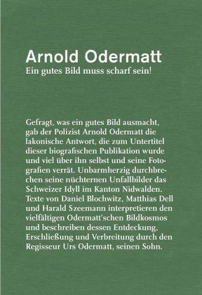 Gefragt, was für ihn ein gutes Bild ausmache, gab Arnold Odermatt, die lakonische Antwort, die zum Untertitel dieser ersten biografischen Publikation über seine Bilder und sein Leben wurde. "Ein gutes Bild muss scharf sein" schliesst eine Lücke in der Literatur über Arnold Odermatt, den Nidwaldener Polizisten, der als fotografischer Autodidakt in der frühen Nachkriesgszeit begann Unfälle, den Polizeidienst, das alltägliche Leben und seine Familie mit seiner 6x6 Mittelformatkamera zu protokollieren. Unbarmherzig durchbrechen die bekannten nüchtern-surrealistischen Unfallbilder immer wieder die Innerschweizer Idylle des familiären und beruflichen Lebens im Kanton Nidwalden der Jahre 1948 bis 1991. Texte von Daniel Blochwitz, Matthias Dell und Harald Szeemann, interpretieren den Odermatt'schen Bildkosmos. Ausführlich wird auch die wundersame Entdeckung, Erschliessung und Verbreitung des Werkes über Bücher, Medien, Ausstellungen und Galerien geschildert. Der Schweizer Regisseur Urs Odermatt entdeckte 1991 die Bilder des Vaters bei Recherchen für seinen Spielfilm "Wachtmeister Zumbühl", der Rest ist eine wunderbare lehrreiche und unterhaltsame Geschichte über die Kunstwelt der letzten 25 Jahre.