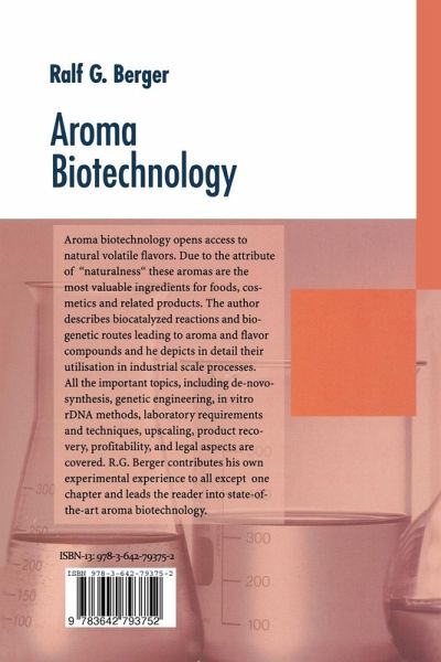 Aroma biotechnology opens access to natural volatile flavors. Due to the attribute of "naturalness" these aromas are the most valuable ingredients for foods, cosmetics and related products. The author describes biocatalyzed reactions and biogenetic routes leading to aroma and flavor compounds and he depicts in detail their utilisation in industrial scale processes. All the important topics, including de-novo-synthesis, genetic engineering, in vitro rDNA methods, laboratory requirements and techniques, upscaling, product recovery, profitability, and legal aspects are covered. R.G. Berger contributes his own experimental experience to all except one chapter and leads the reader into state-of-the-art aroma biotechnology.
