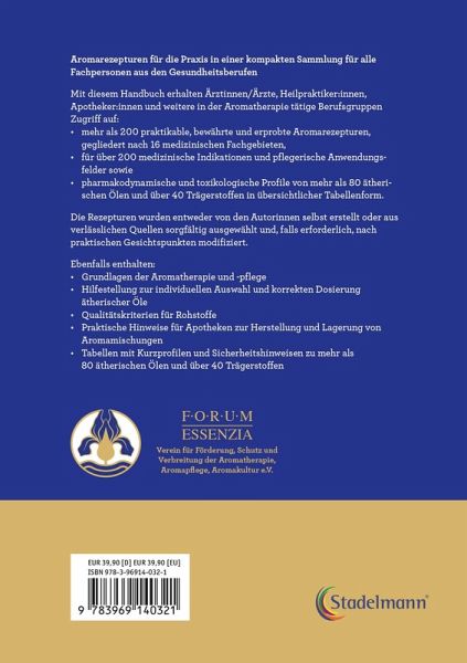 Mit diesem Handbuch erhalten Ärztinnen und Ärzte, Heilpraktiker:innen, Apotheker:innen und Fachpersonen aus der Pflege Zugriff auf:- mehr als 200 praktikable, bewährte und erprobte Aromarezepturen, gegliedert nach 16 medizinischen Fachgebieten,- für über 200 medizinische Indikationen und pflegerische Anwendungsfelder sowie- pharmakodynamische und toxikologische Profile von mehr als 80 ätherischen Ölen und über 40 Trägerstoffen in übersichtlicher TabellenformDie Rezepturen wurden entweder von den Autorinnen selbst erstellt oder aus hochwertigen Quellen sorgfältig ausgewählt und, falls erforderlich, nach praktischen Gesichtspunkten modifiziert.