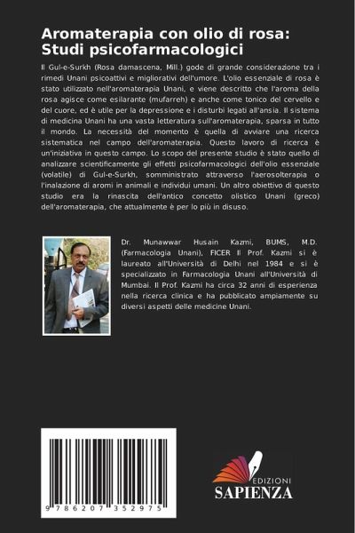 Il Gul-e-Surkh (Rosa damascena, Mill.) gode di grande considerazione tra i rimedi Unani psicoattivi e migliorativi dell'umore. L'olio essenziale di rosa è stato utilizzato nell'aromaterapia Unani, e viene descritto che l'aroma della rosa agisce come esilarante (mufarreh) e anche come tonico del cervello e del cuore, ed è utile per la depressione e i disturbi legati all'ansia. Il sistema di medicina Unani ha una vasta letteratura sull'aromaterapia, sparsa in tutto il mondo. La necessità del momento è quella di avviare una ricerca sistematica nel campo dell'aromaterapia. Questo lavoro di ricerca è un'iniziativa in questo campo. Lo scopo del presente studio è stato quello di analizzare scientificamente gli effetti psicofarmacologici dell'olio essenziale (volatile) di Gul-e-Surkh, somministrato attraverso l'aerosolterapia o l'inalazione di aromi in animali e individui umani. Un altro obiettivo di questo studio era la rinascita dell'antico concetto olistico Unani (greco) dell'aromaterapia, che attualmente è per lo più in disuso.