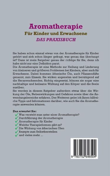 Sie haben schon einmal etwas von der Aromatherapie für Kinder gehört und sich schon länger gefragt, was genau das überhaupt ist? Dann ist mein Ratgeber genau der richtige für Sie, denn ich habe nicht nur eine Definition parat.Die Aromatherapie ist eine Methode zur Heilung und Linderung von kleineren und größeren Problemen bei Kindern, aber auch für Erwachsene. Dabei kommen ätherische Öle, auch Pflanzendüfte genannt, zum Einsatz. Sie wirken angenehm und beruhigend auf die Heranwachsenden. Richtig eingesetzt, können sie sogar eine nachhaltige und heilsame Wirkung auf den Körper und die Seele ausüben.Sie werden in diesem Ratgeber außerdem etwas über die Wirkung der Öle, Nebenwirkungen und Gefahren sowie über die Anwendungsbereiche erfahren. Des Weiteren gebe ich Ihnen hilfreiche Tipps und Informationen darüber, wie auch Sie die Aromatherapie anwenden können.Das erwartet Sie:-Was versteht man unter einer Aromatherapie?-Durchführung der Aromatherapie-Aromatherapie für Kinder-Welche Therapieformen gibt es?-Die Wirkung von ätherischen Ölen-Rezepte zum Selbstherstellen-und vieles mehr ...
