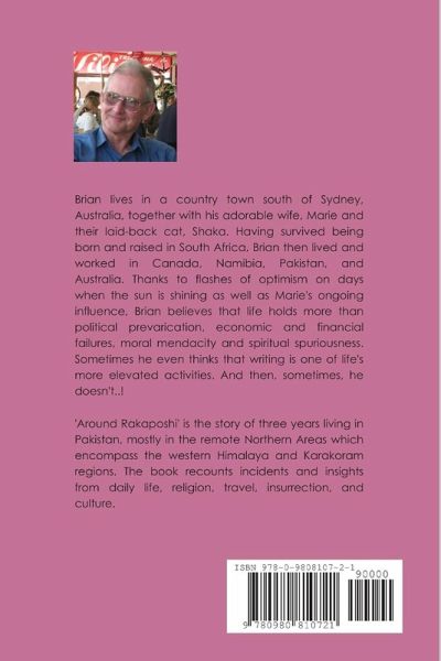 'Around Rakaposhi' is the story of three years living in Pakistan, mostly in the remote Northern Areas (which could be called 'Pakistani Kashmir') which encompass the western Himalaya and Karakoram regions. The book recounts incidents and insights from daily life, religion, travel, insurrection, and culture in regions that are difficult to access and which are visited by comparatively few outsiders.